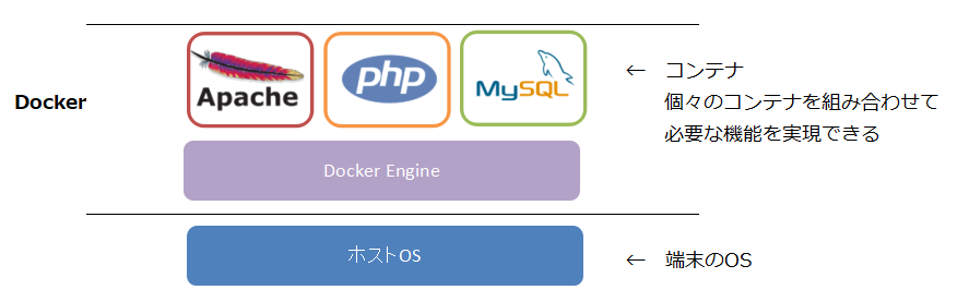 コンテナの作成、稼働、削除などの管理を行うためのプラットフォームです。WebサーバやDBなど必要なコンテナを組み合わせることで容易に仮想インフラ環境を構築できます。