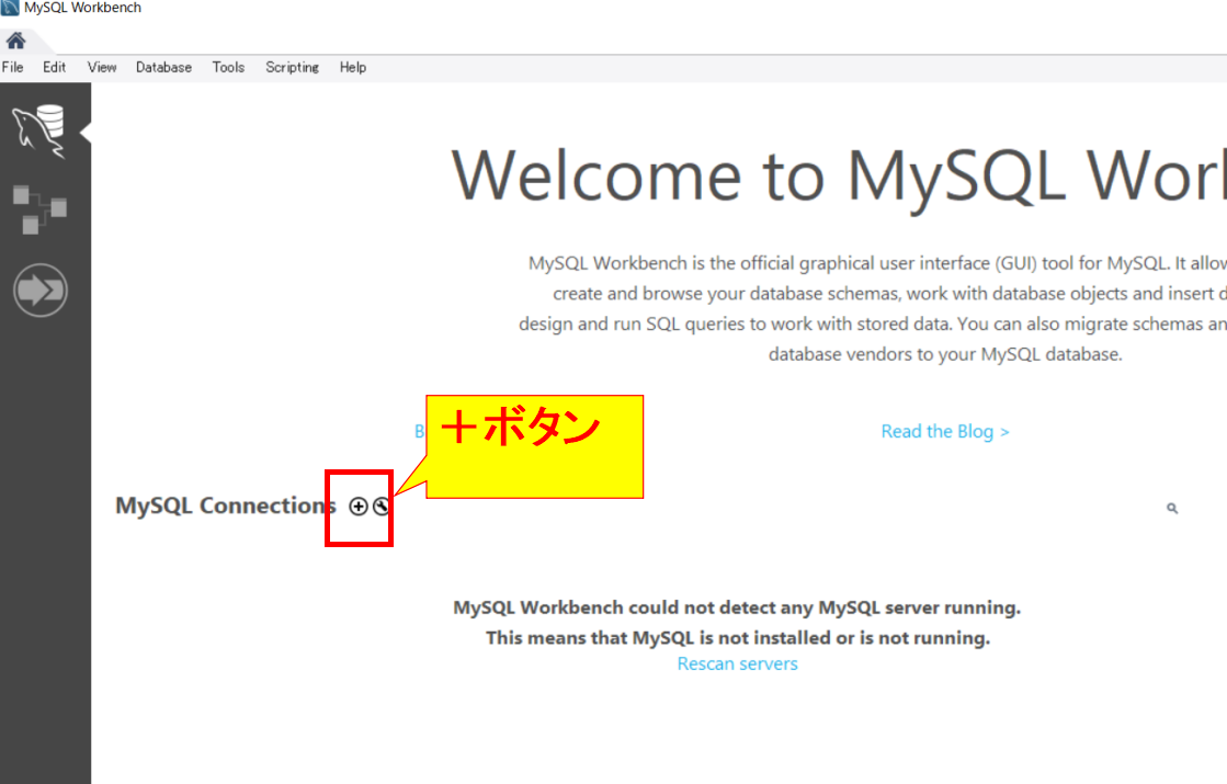 トップ画面にある「MySQL Connection」の⊕ボタンをクリックしてください。